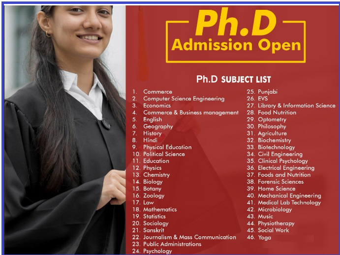 Ph. D : Any Subject / Any Specialization : Duration : Full Time/Part Time : 3 Years(6 semesters).